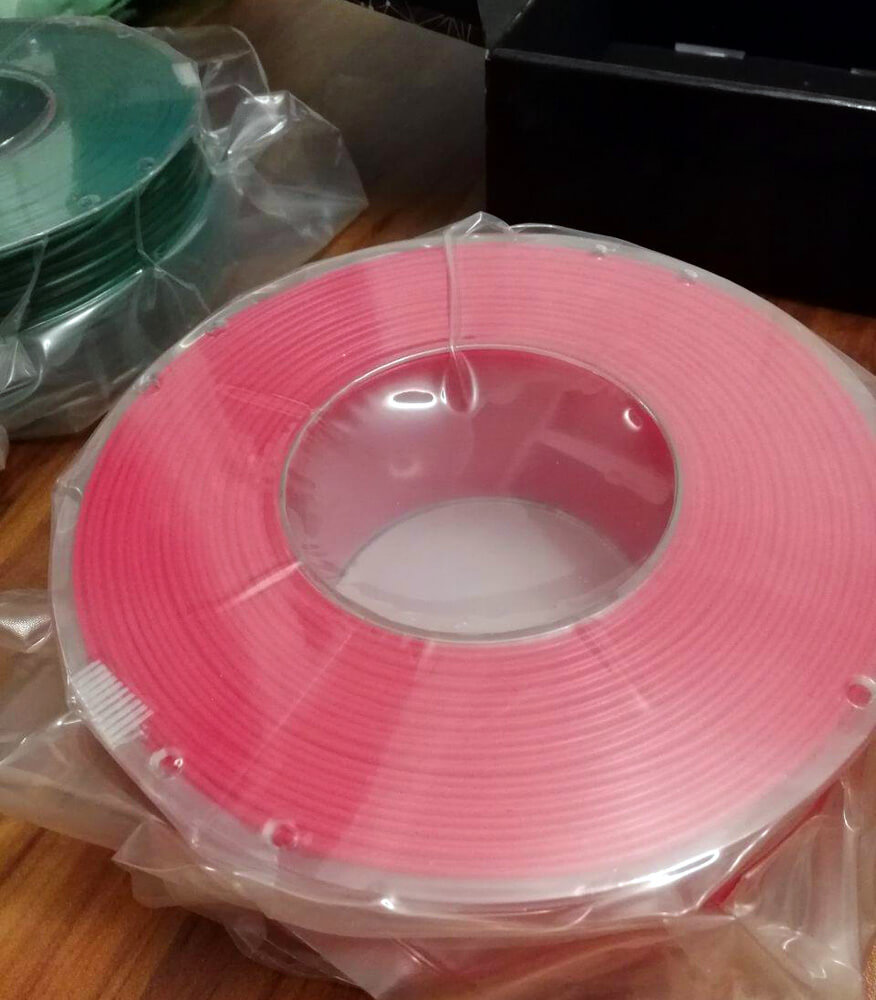 Ein weiterer positiver Aspekt ist der in den Beschreibungstexten von Creality PLA genannte Oberflächenglanz des Druckmaterials. Dieser scheint schon beim Auspacken des Filaments auf. Die transparente Folie sowie die transparenten Spulen, auf denen das Material aufgewickelt ist, verstärken den Effekt immens. Entfernt man das Verpackungsmaterial wirkt der Filamentfaden bei fast allen Farben immer noch leicht glänzend, zumindest im Schein des Lichts. Davon abgesehen wirken die Materialien rein und halten ersten Knickversuchen problemlos stand.